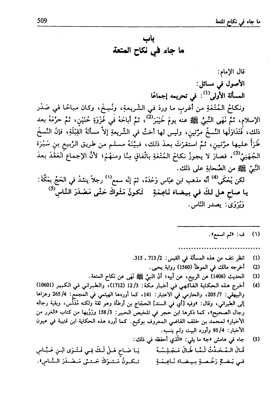 (¬1) انظر نتف من هذه المسألة في القبس: 2/ 713 - 315.