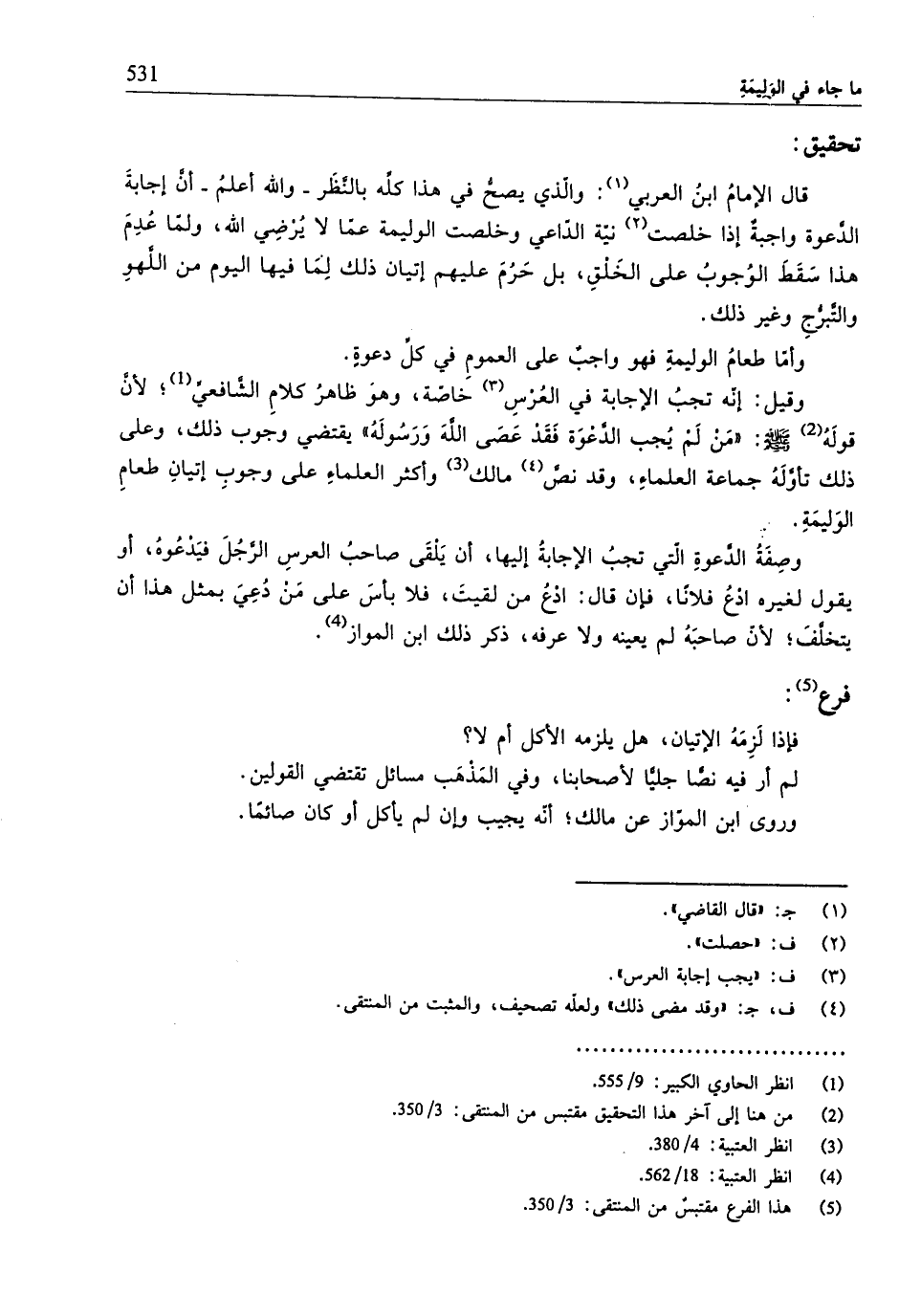 (¬5) هذا الفرع مقتبسٌ من المنتقى: 3/ 350.