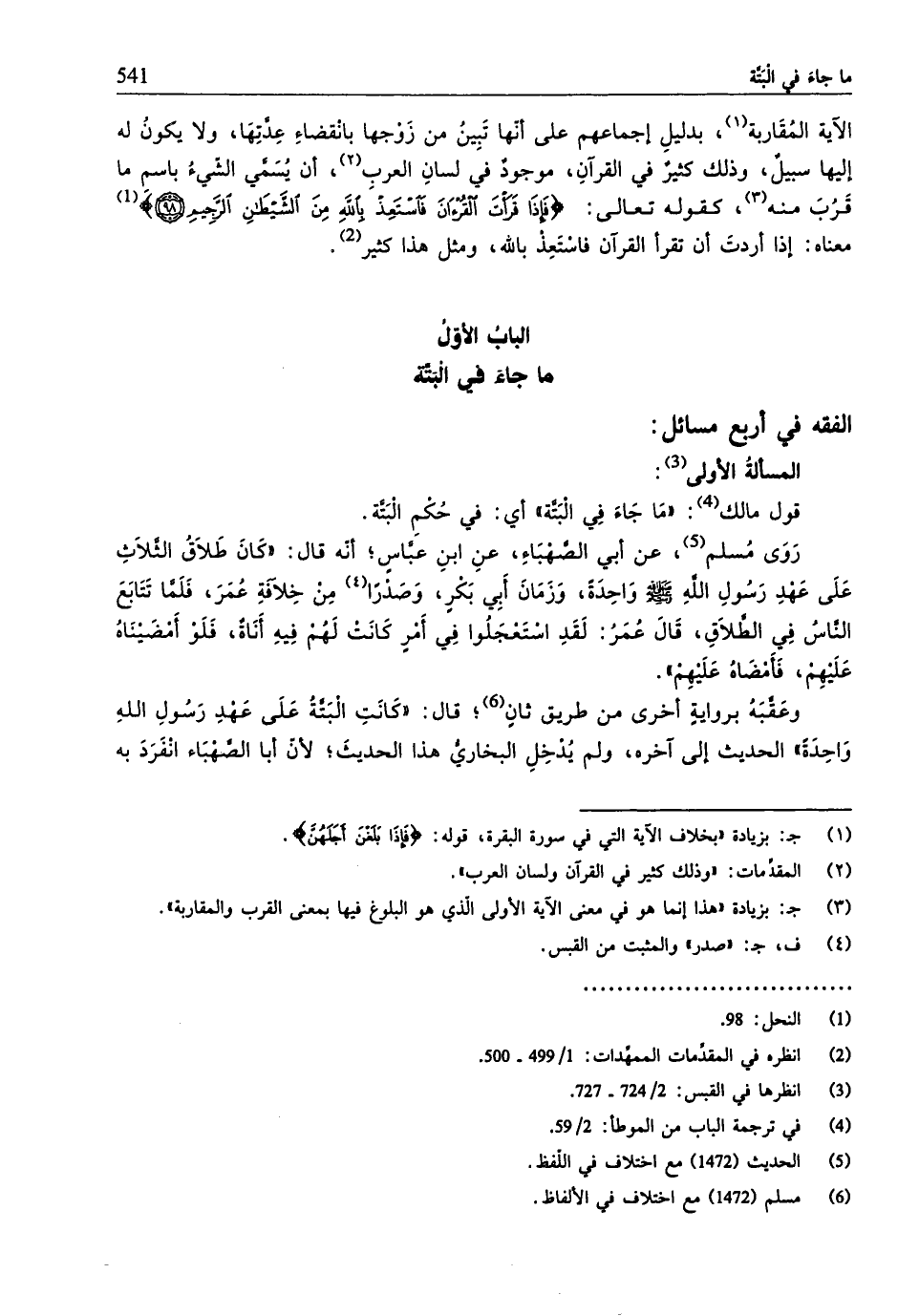 البابُ الأوّلُ ما جاءَ في البَتَّة