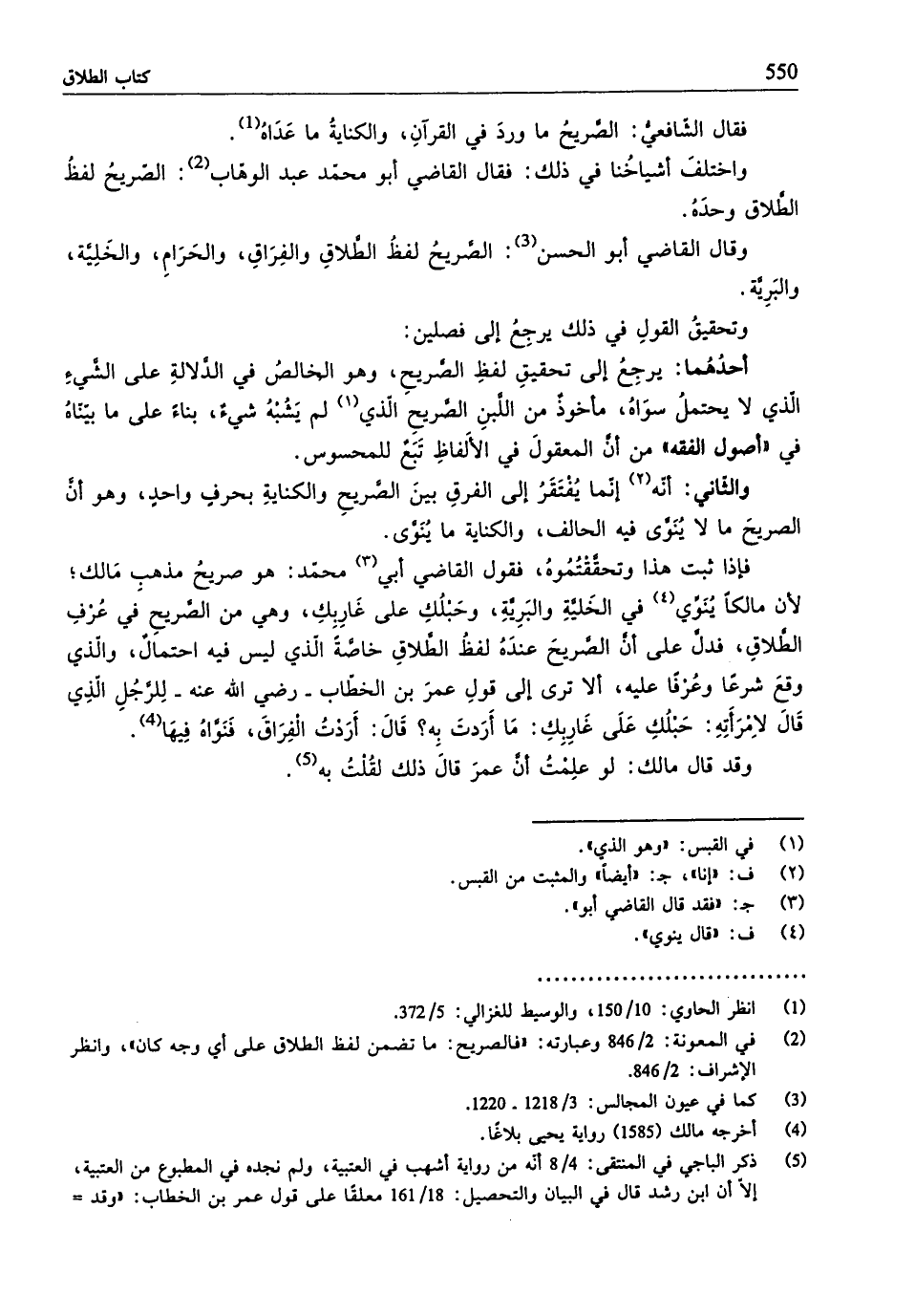 (¬2) في المعونة: 2/ 846 وعبارته: "فالصريح: ما تضمن لفظ الطّلاق على أي وجه كان"، وانظر الإشراف: 2/ 846.