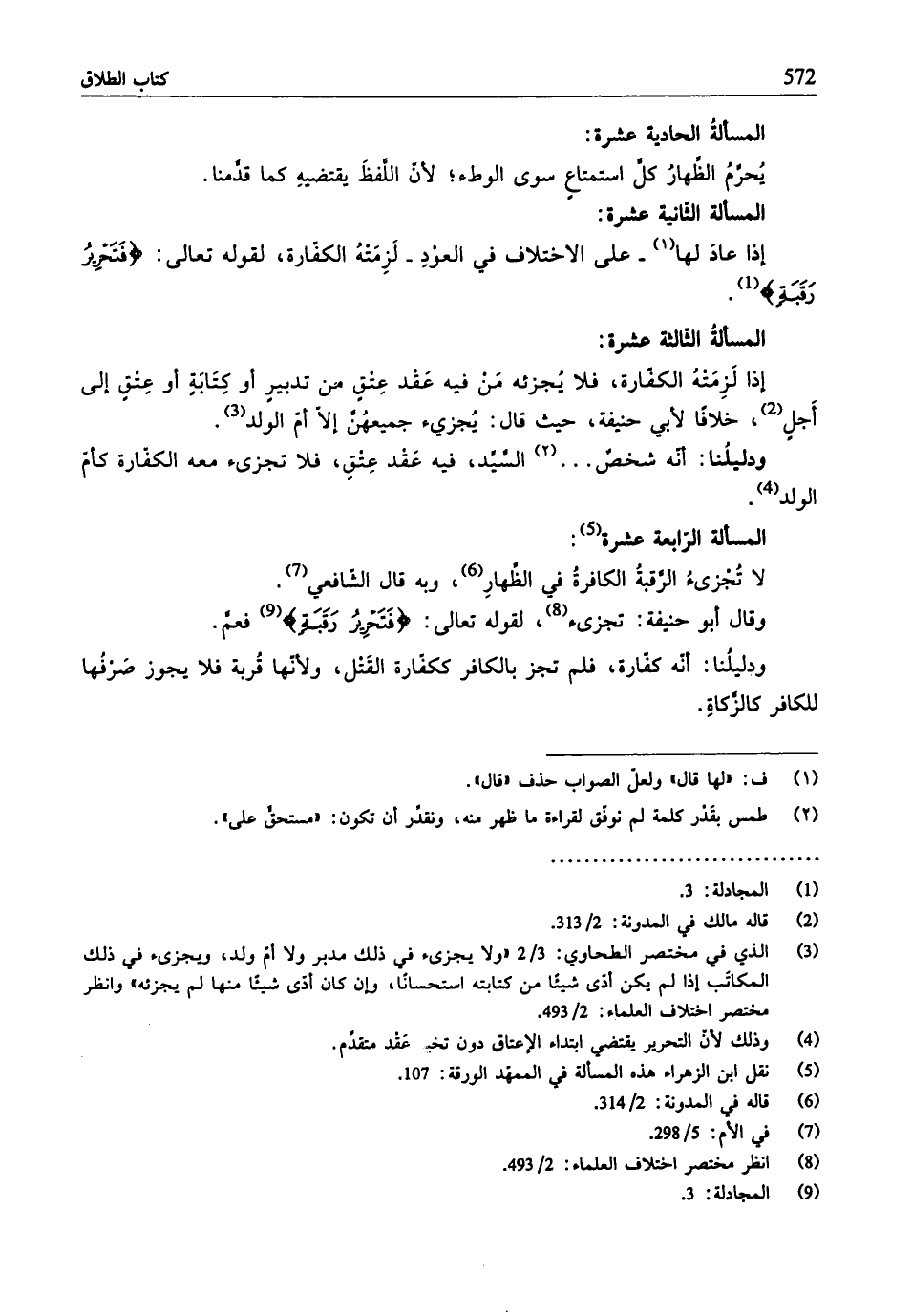 (¬3) الّذي في مختصر الطحاوي: 3/ 2 "ولا يجزئ في ذلك مدبر ولا أمّ ولد، ويجزىء في ذلك المكاتَب إذا لم يكن أدّى شيئًا من كتابته استحسانًا، وان كان أدّى شيئًا منها لم يجزنه" وانظر مختصر اختلاف العلماء: 2/ 493.