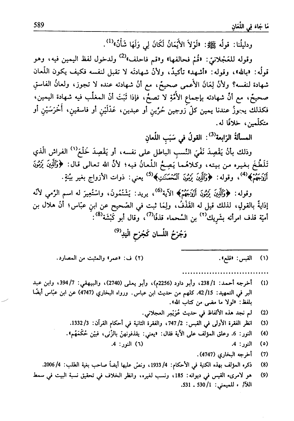 (¬3) انظر الفقرة الأولى في القبس: 2/ 747، والفقرة الثّانية في أحكام القرآن: 3/ 1332.