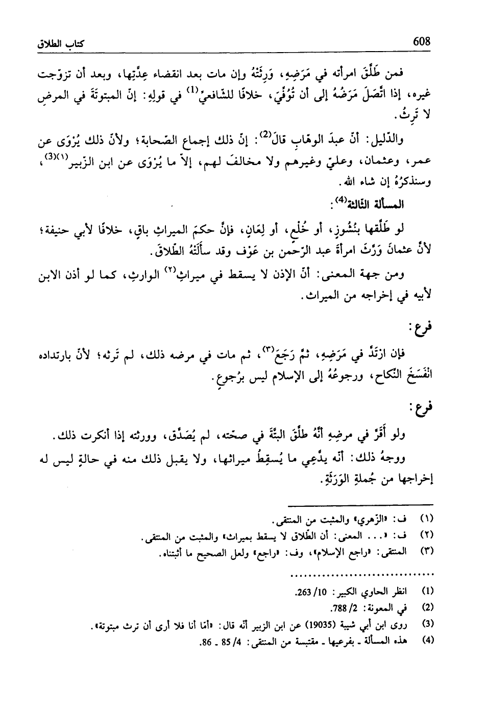 (¬3) روى ابن أبي شيبة (19035) عن ابن الزبير أنّه قال: "أمّا أنا فلا أرى أنّ ترث مبتوتة".