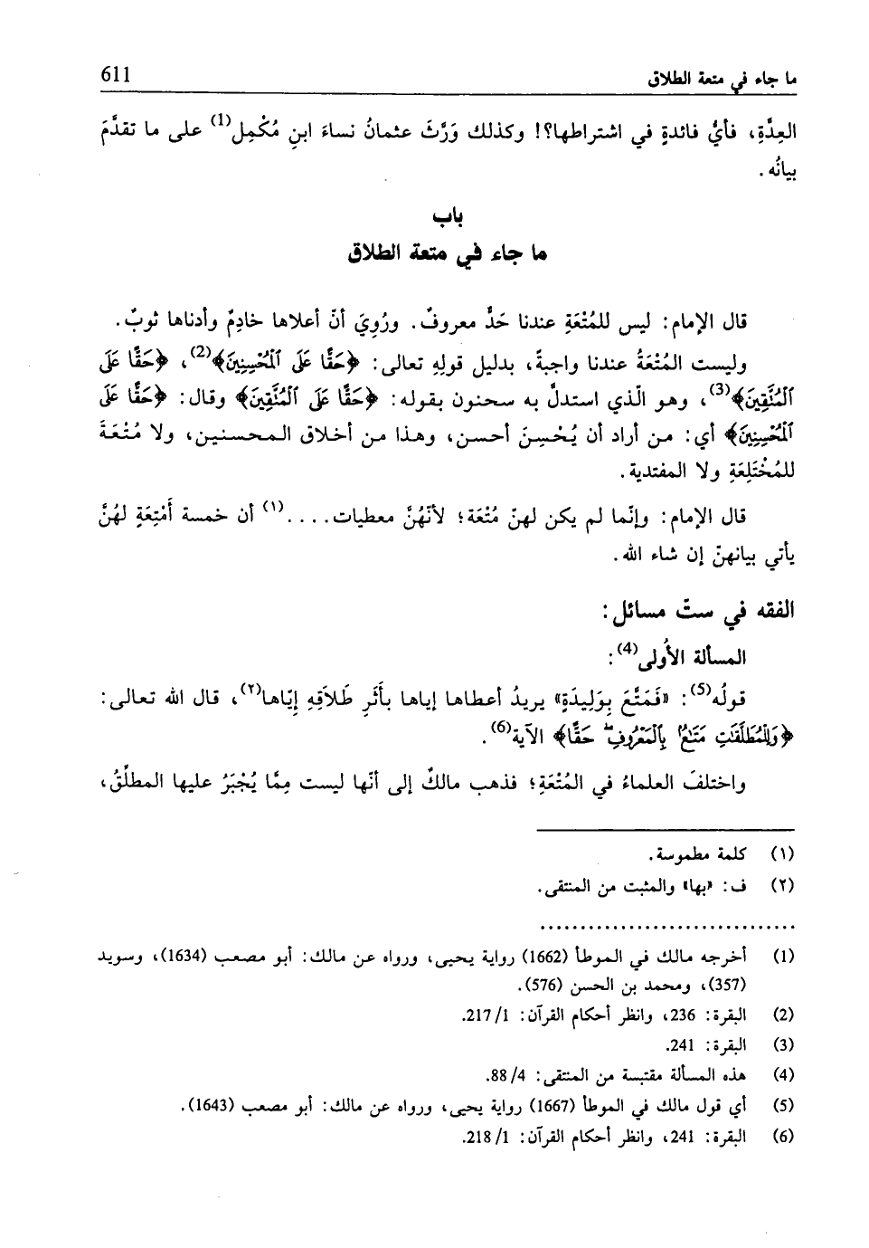 (¬5) أي قول مالك في الموطَّأ (1667) رواية يحيى، ورواه عن مالك: أبو مصعب (1643).