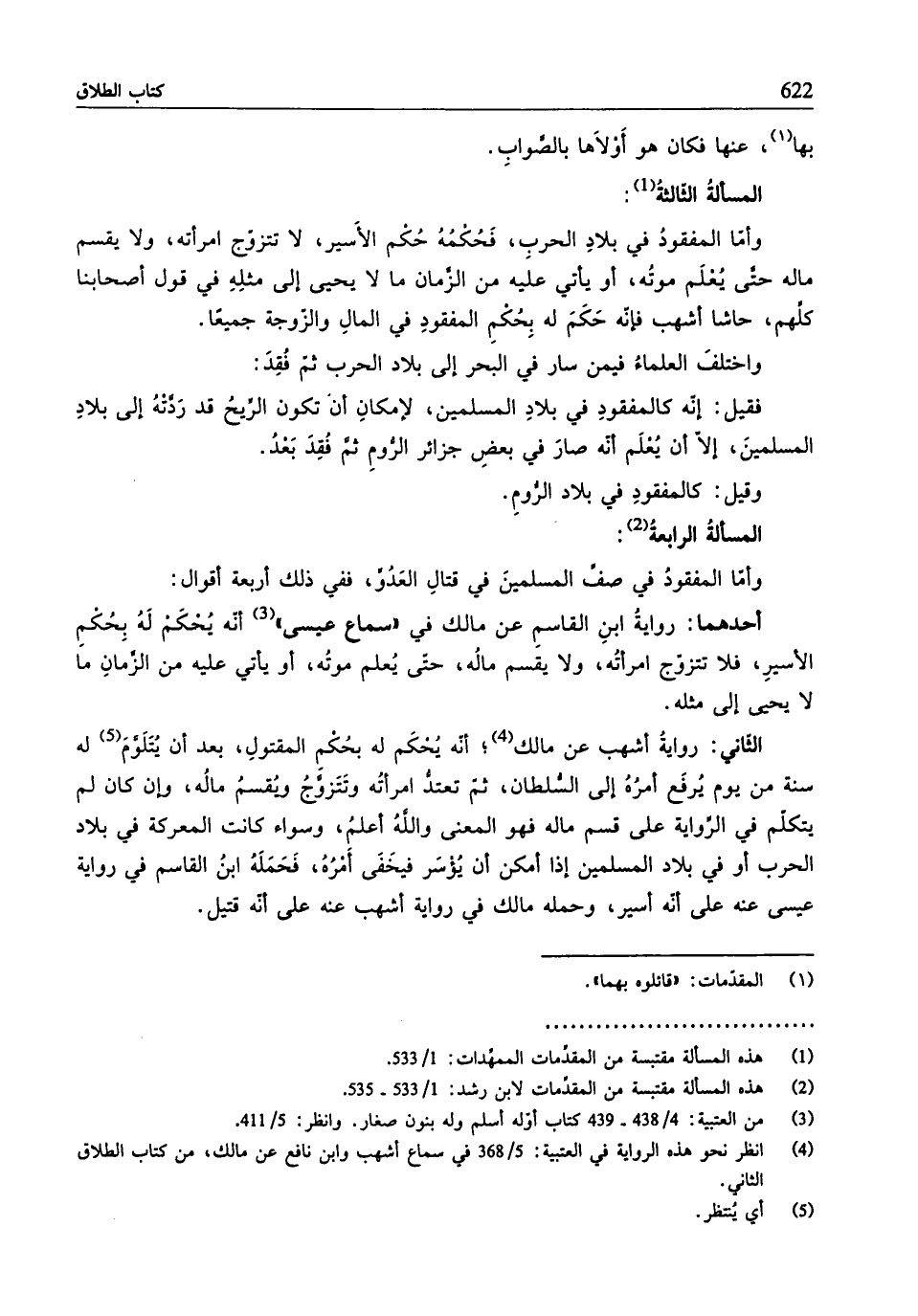 (¬2) هذه المسألة مقتبسة من المقدِّمات لابن رشد: 1/ 533 - 535.