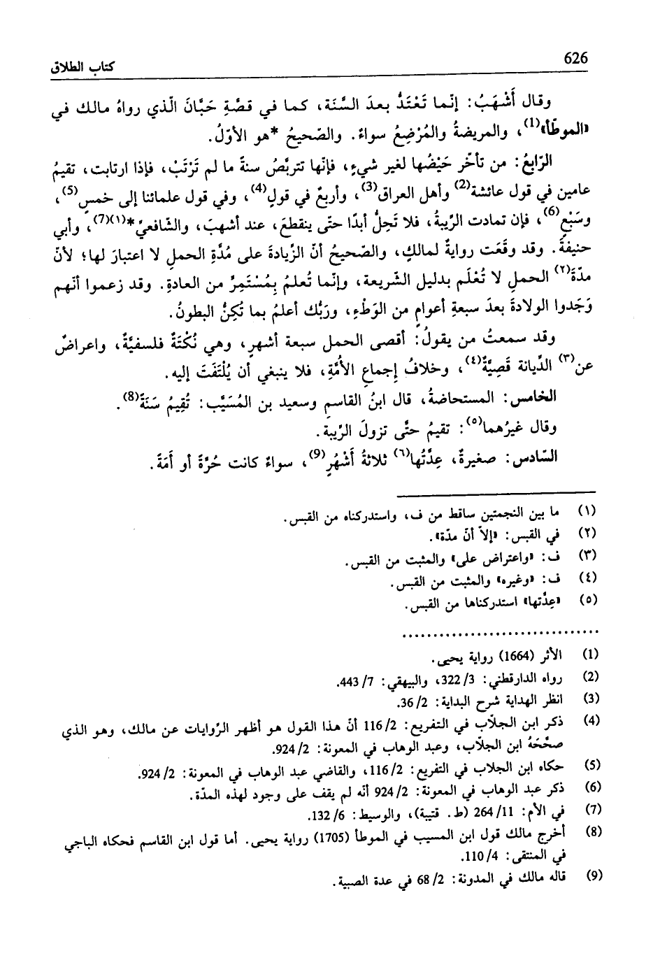 (¬6) ذكر عبد الوهّاب في المعونة: 2/ 924 أنَّه لم يقف على وجود لهذه المدَّة.