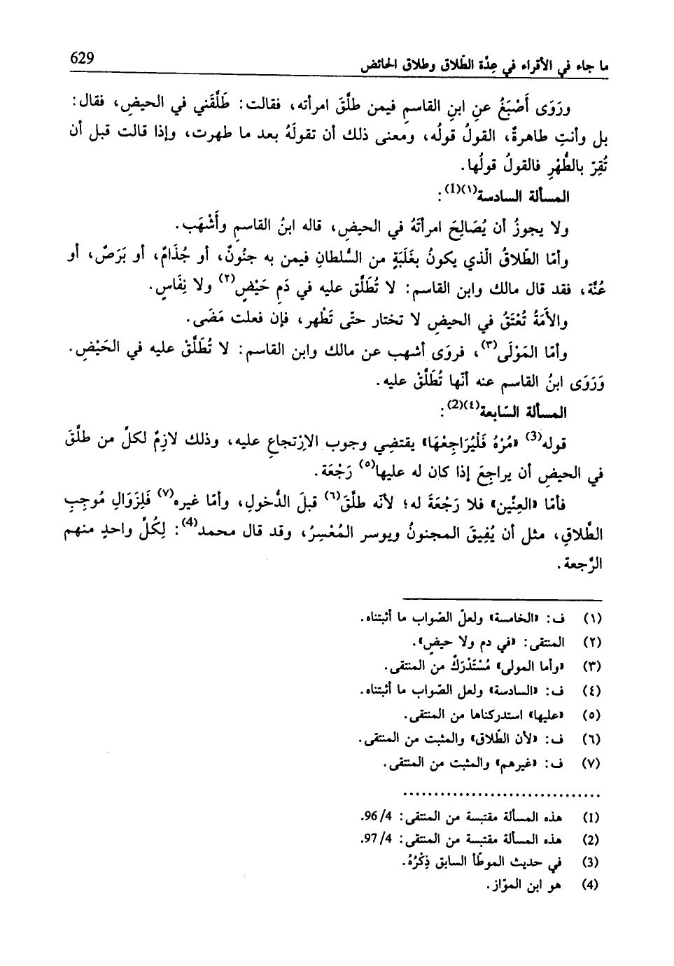 (¬2) هذه المسألة مقتبسة من المنتقى: 4/ 97.