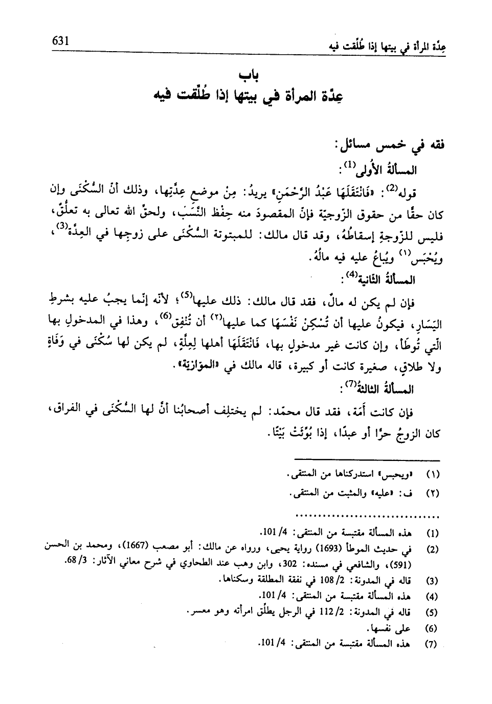 (¬7) هذه المسألة مقتبسة من المنتقى: 4/ 101.