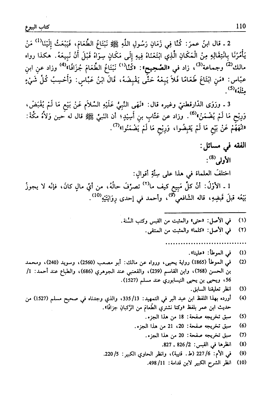 (¬4) أورده بهذا اللفظ ابن عبد البرّ في التمهيد: 13/ 335، والذي وجدناه في صحيح مسلم (1527) من حديث ابن عمر بلفظ "وكنا نشتري الطّعام من الرُّكبانِ جزافًا".