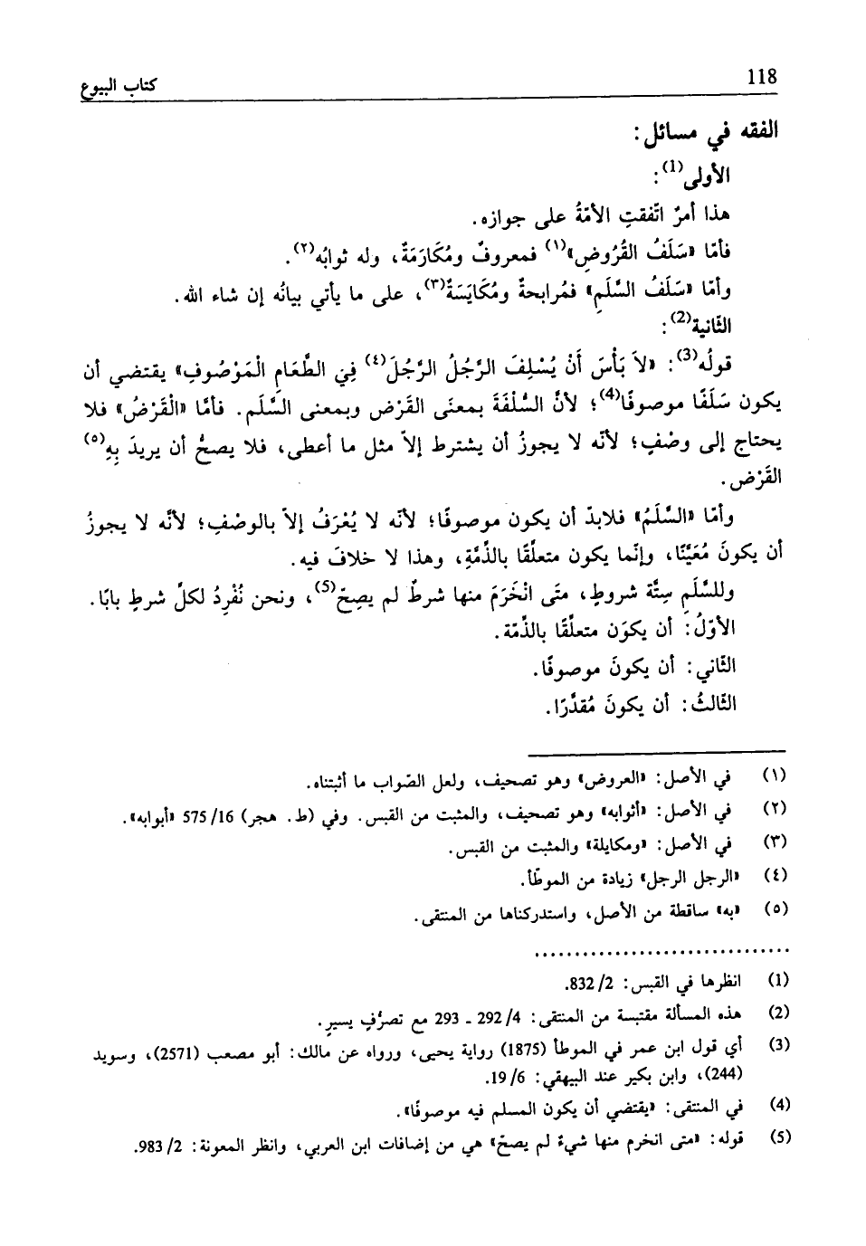 (¬4) في المنتقى: "يقضي أنّ يكون السلم في موصوفًا".