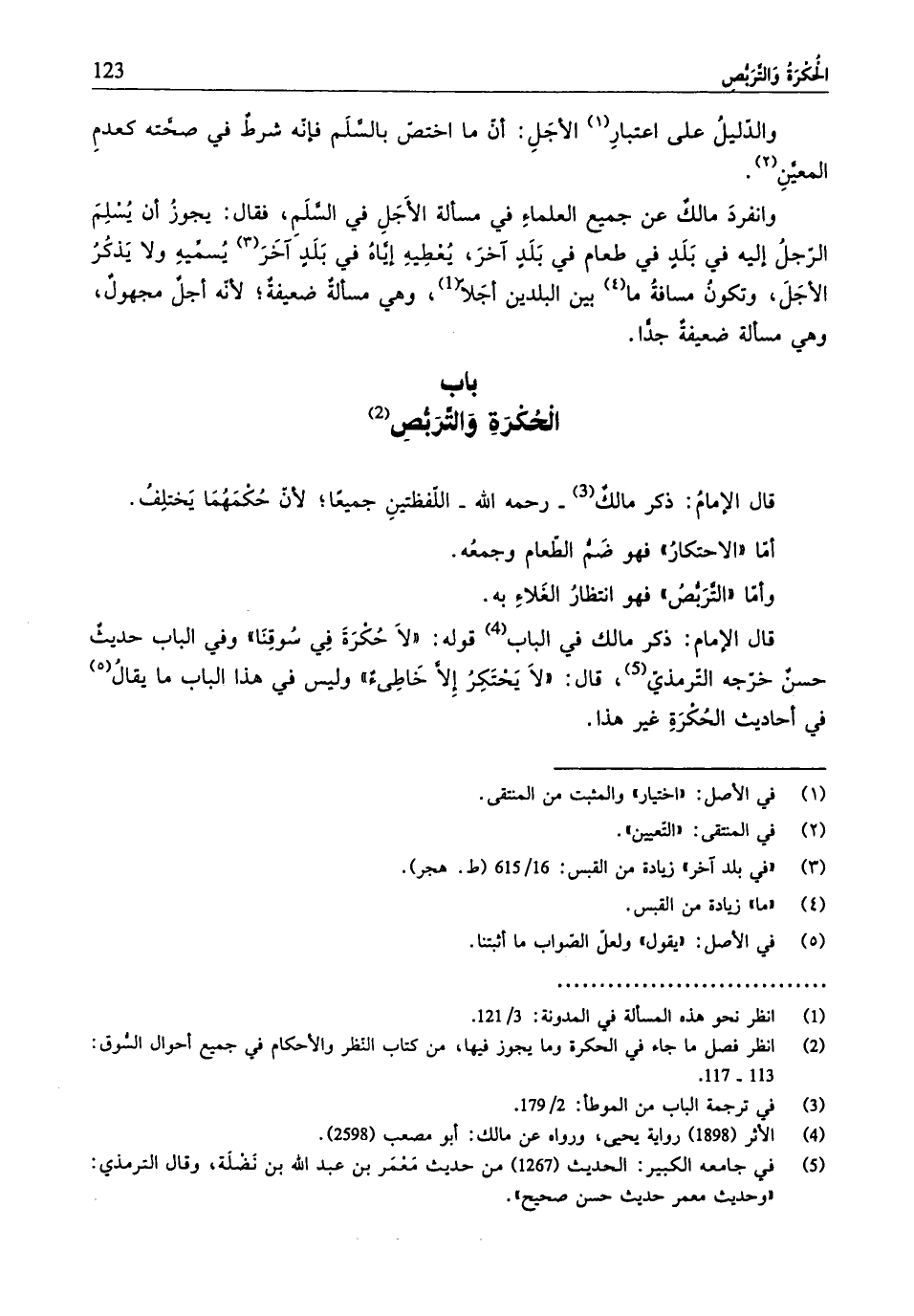 (¬2) انظر فصل ما جاء في الحكرة وما يجوز فيها، من كتاب النّظر والأحكام في جميع أحوال السُّوق: 113 - 117.