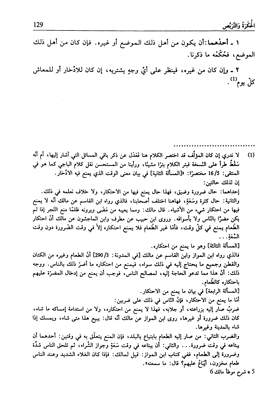 (¬1) لا ندري إنَّ كان المؤلِّف قد اختصر الكلام هنا فَعَدَل عن ذكر باقي المسائل الّتي أشار إليها، أم أنّه سَقْطٌ طرأ على النّسخة فبتر الكلام بترًا مشينًا، ورأينا من المستحسن نقل كلام الباجي كما هو في المنتقي: 5/ 16 مختصرًا: " [المسألة الثّانية] في ببان معنى الوقت الّذي يمنع فيه الادِّخار.