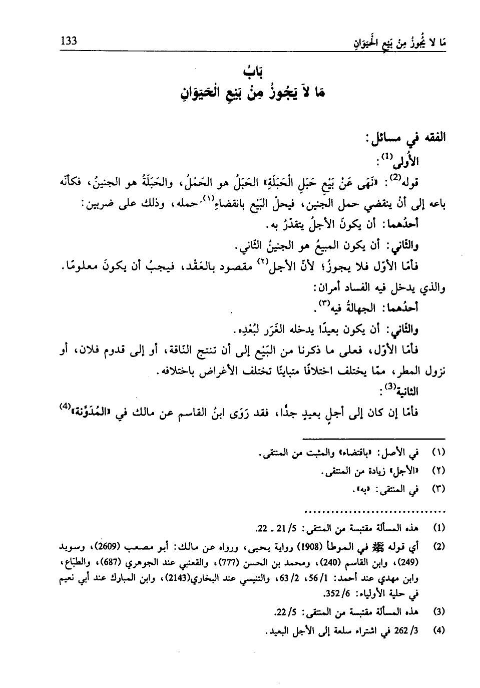 (¬1) هذه المسألة مقتبسة من المنتقى: 5/ 21 - 22.