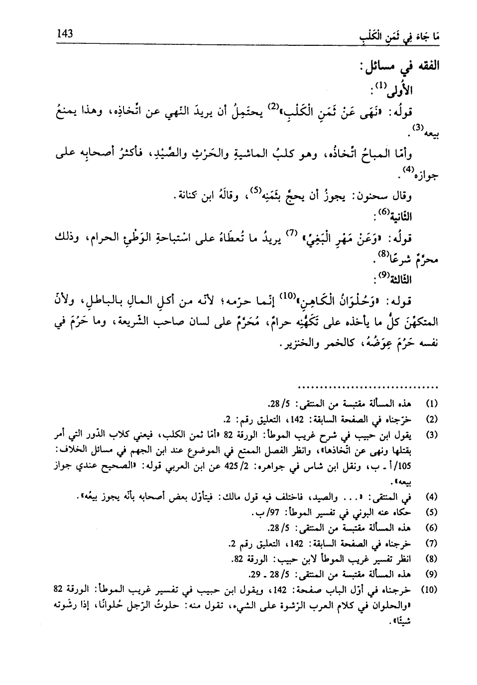 (¬9) هذه المسألة مقتبسة من المنتقى:5/ 28 - 29.