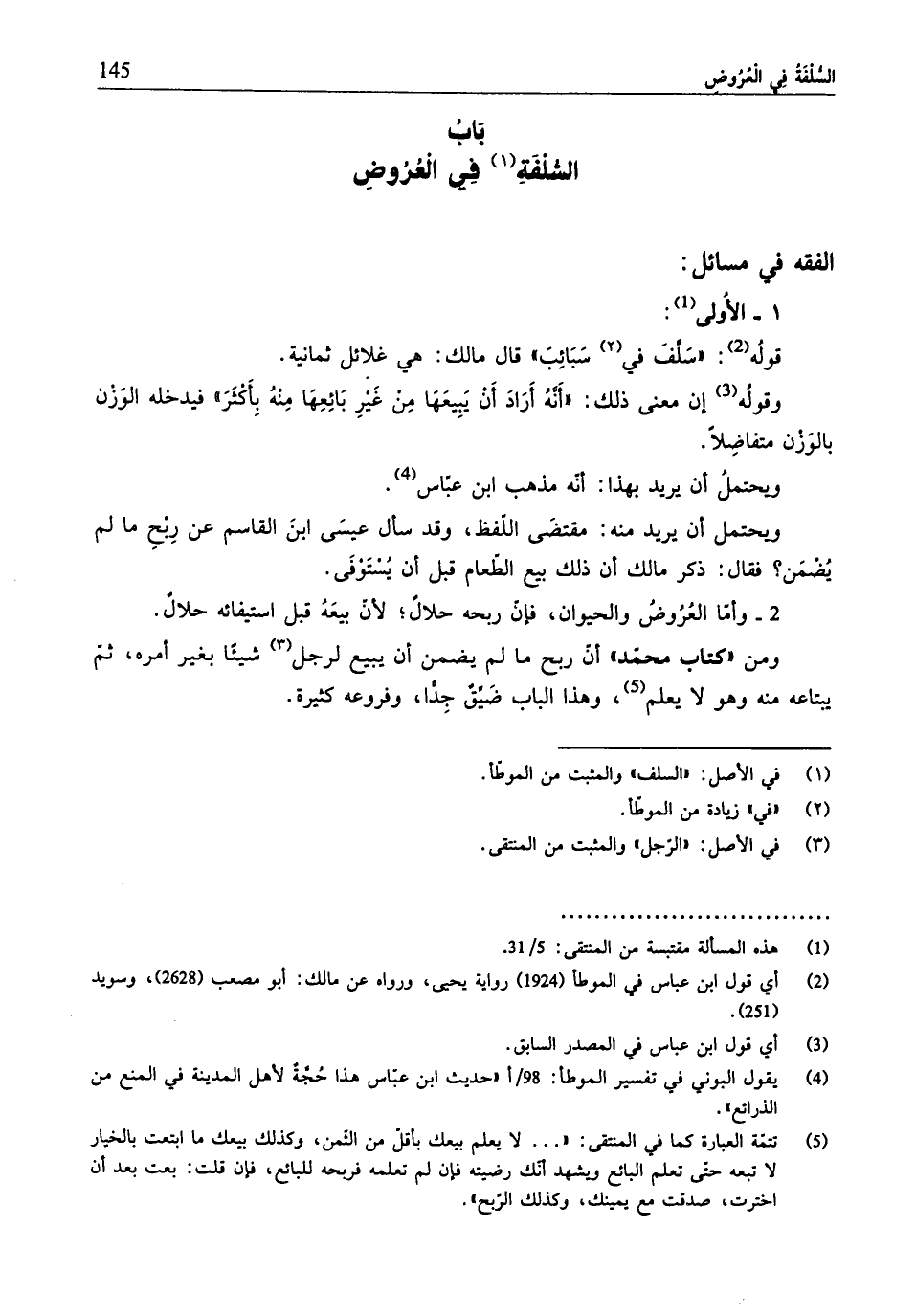 (¬4) يقول البوني في تفسير الموطَّأ: 98/ أ "حديث ابن عبّاس هذا حُجَّةٌ لأهل المدينة في المنع من الذَّرائع".