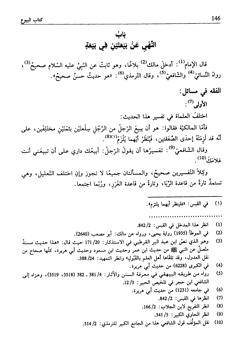 بَابُ النَّهْيِ عَنْ بَيعَتَينِ في بَيعَةٍ