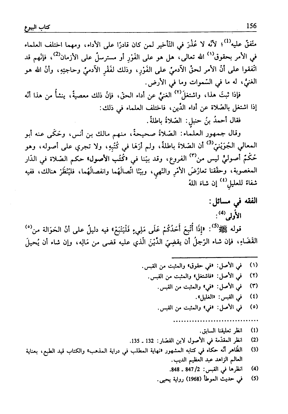فإذا ثبتَ هذا، واشتغلَ الغنىُّ عن أداء الحقّ، فإن ذلك معصيةٌ، ينشأُ من هذا أنّه إذا اشتغل بالصّلاة عن أداء الدِّين، فاختلف العلماء في ذلك: