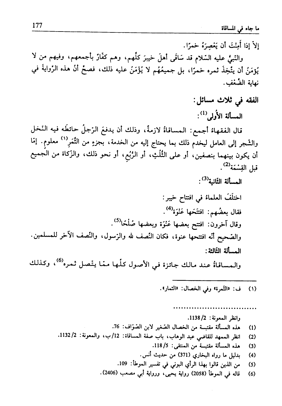 (¬2) انظر الممهد للقاضي عبد الوهّاب، باب صفة المساقاة: 12/ ب، والمعونة: 2/ 1132.