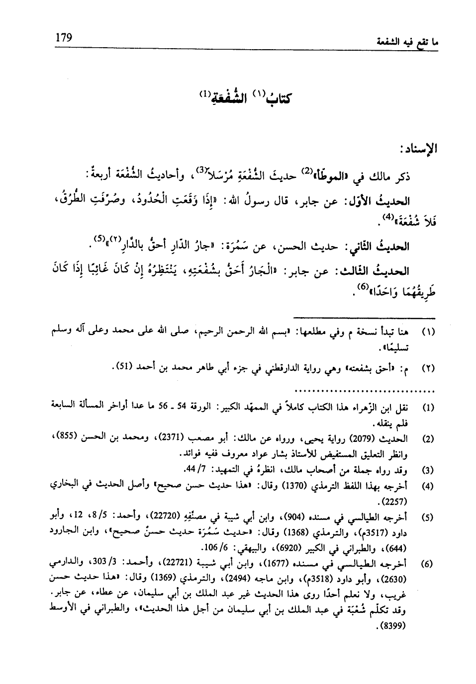 (¬2) الحديث (2079) رواية يحيى، ورواه عن مالك: أبو مصعب (2371)، ومحمد بن الحسن (855)، وانظر التعليق المستفيض للأستاذ بشار عواد معروف ففيه فوائد.