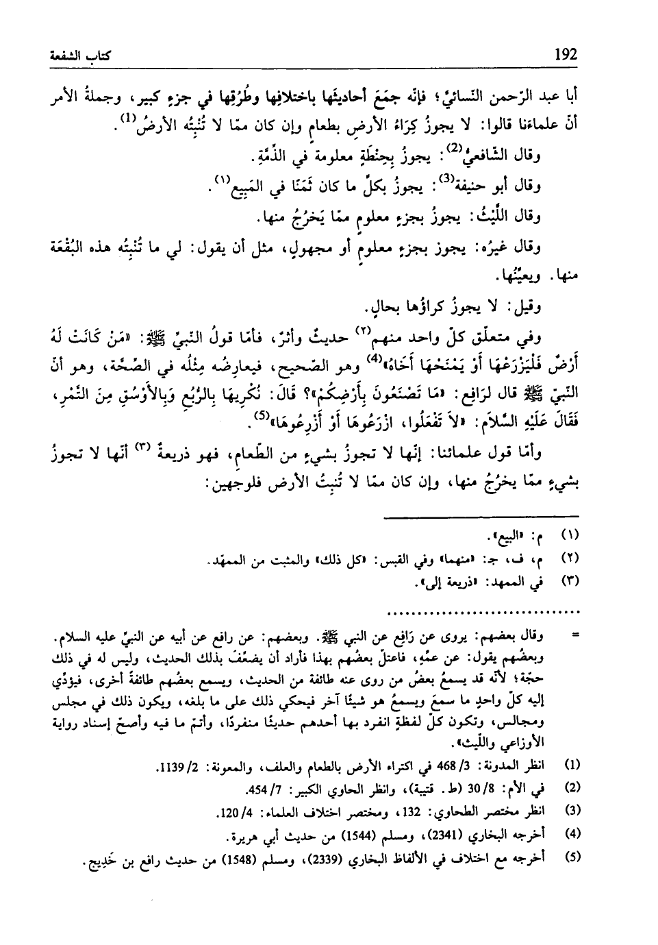 أبا عبد الرّحمن النّسائيَّ؛ فإنّه جمَعَ أحاديثَها باختلافها وطُرُقِها في جزءٍ كبير، وجملةُ الأمر أنّ علماءَنا قالوا: لا يجوزُ كِرَاءُ الأرضِ بطعامٍ وإن كان ممّا لا تُنبِتُه الأرضُ (¬1).