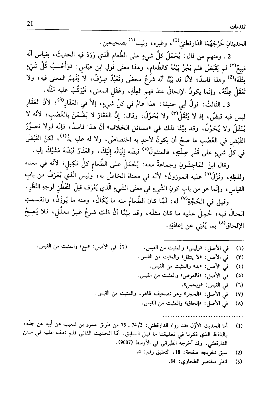 (¬1) أمّا الحديث الأوّل فقد رواه الدارقطني: 3/ 74 - 75 من طريق عمرو بن شعيب عن أبيه عن جدّه، باللفظ الّذي ذكرنا في تعليقنا ما قبل السابق. أمّا الحديث الثّاني فلم نقف عليه في سنن الدارقطني، وقد أخرجه الطبراني في الأوسط (9007).