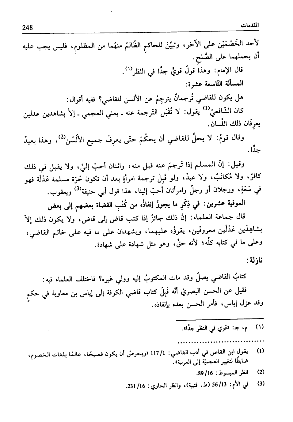 (¬2) يقول ابن القاص في أدب القاضي: 1/ 117 "ويحرصُ أنّ يكون فصيحًا، عالمًا بلغات الخصوم، ضابطًا لتغير العجميّة إلى العربية".
