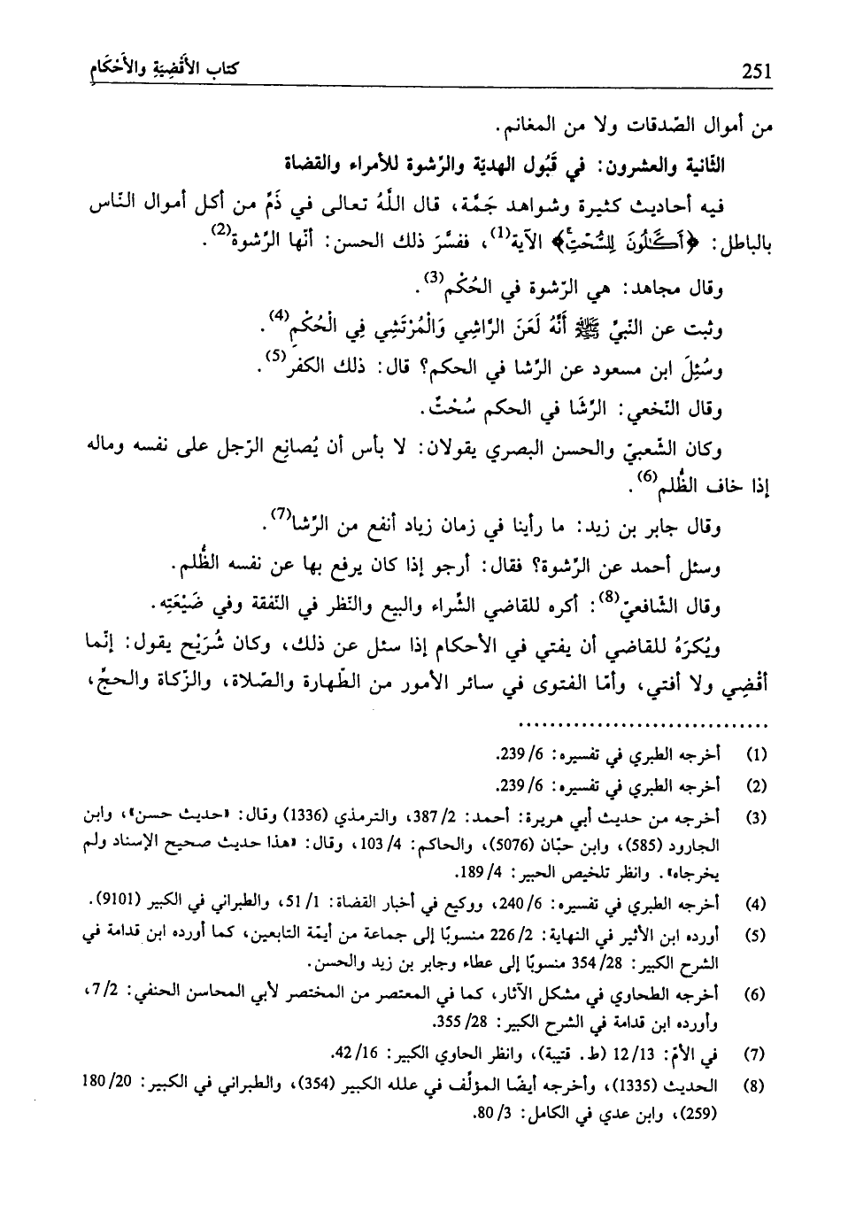 الثّانية والعشرون: في قَبُول الهديّة والرَّشوة للأمراء والقضاة
