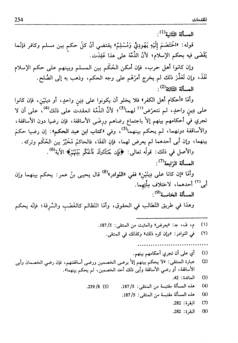 (¬5) عبارة المنتقى: "لا يحكم بينهم إِلَّا برضى الخصمين ورضى أساقفتهم، فإن رضي الخصمان وأبى الأساقفة، أو رضي الأساقفة وأبى ذلك أحد الخصمين، لم يحكم بينهما".