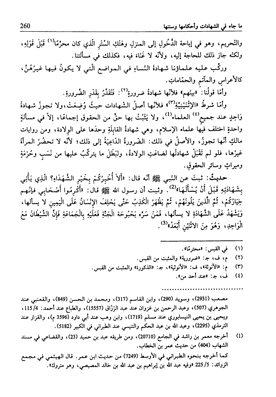 وركَّب عليه علماؤنا شهادةَ النِّساء في المواضع الّتي لا يكونُ فيها غيرُهُنَّ، كالأعراسِ والمآتمِ والحمّاماتِ.