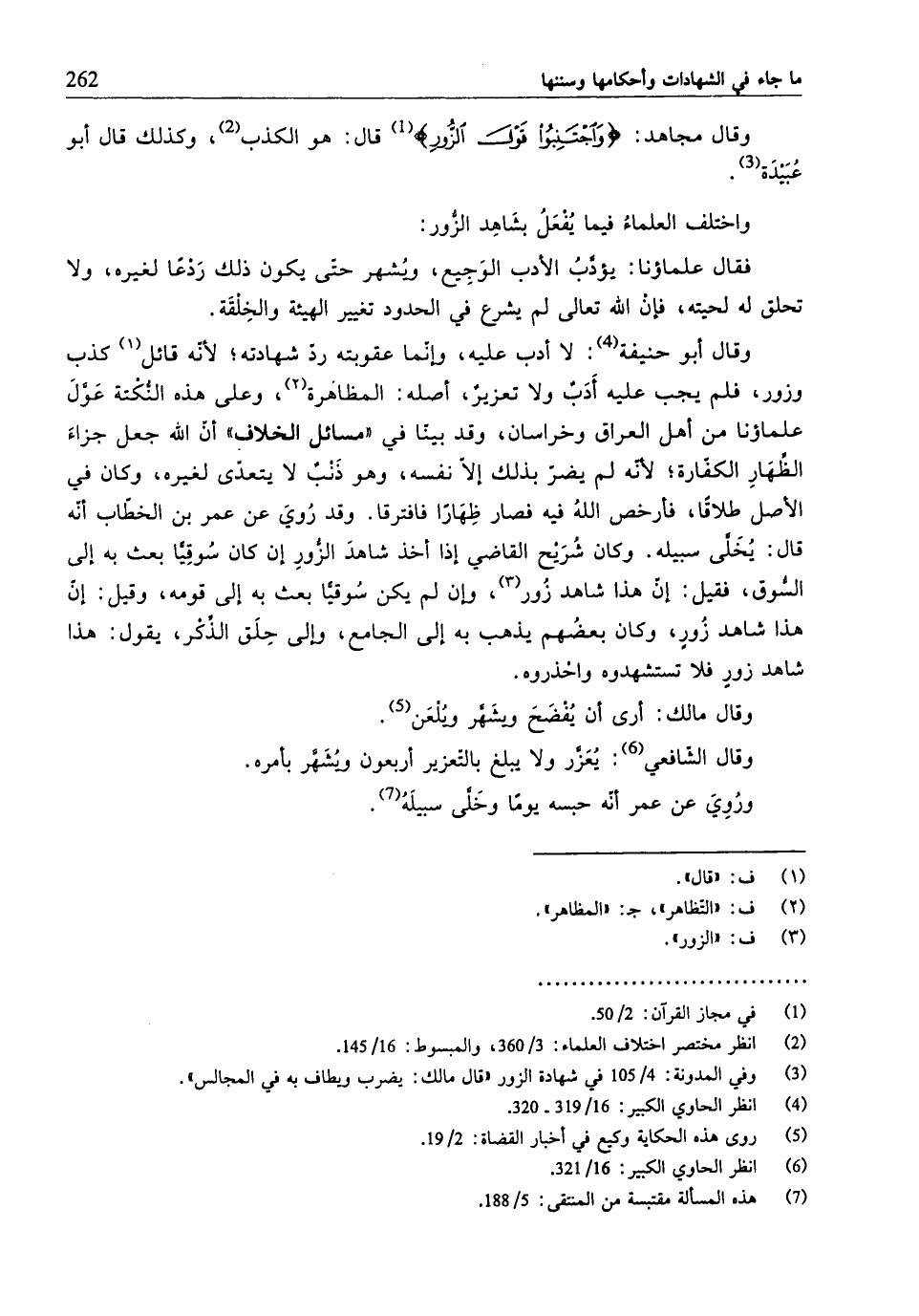 (¬5) وفي المدوّنة: 4/ 105 في شهادة الزورإ "قال مالك: يضرب ويطات به في المجالس".