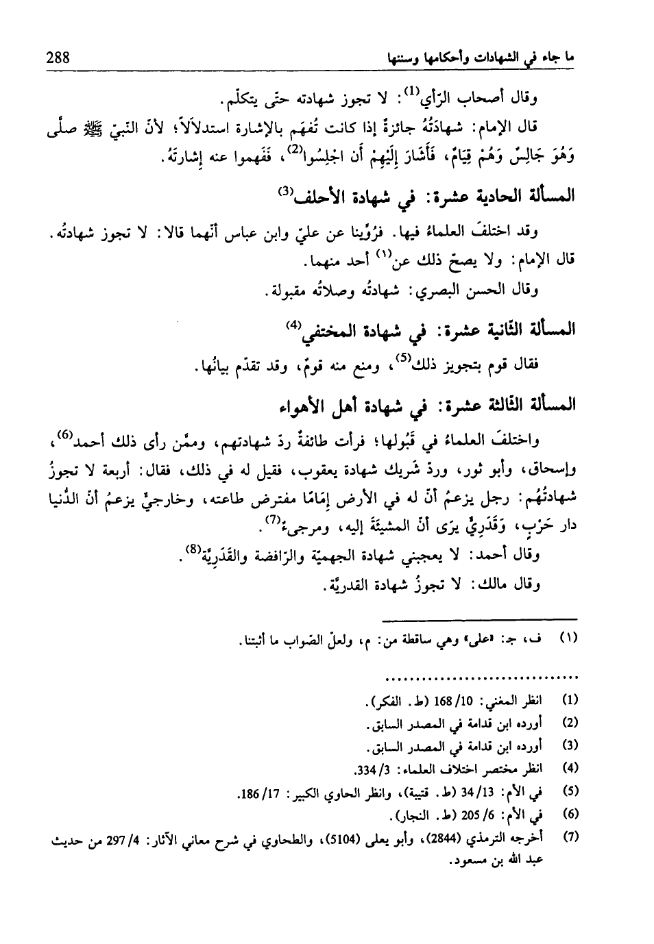 المسألة الثّالثة عشرة: في شهادة أهل الأهواء