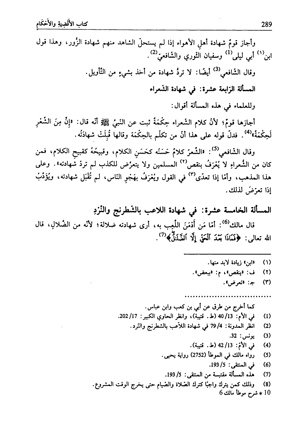 (¬6) انظر المدوّنة: 4/ 79 في شهادة اللّاعب بالشطرنج والنّرد.