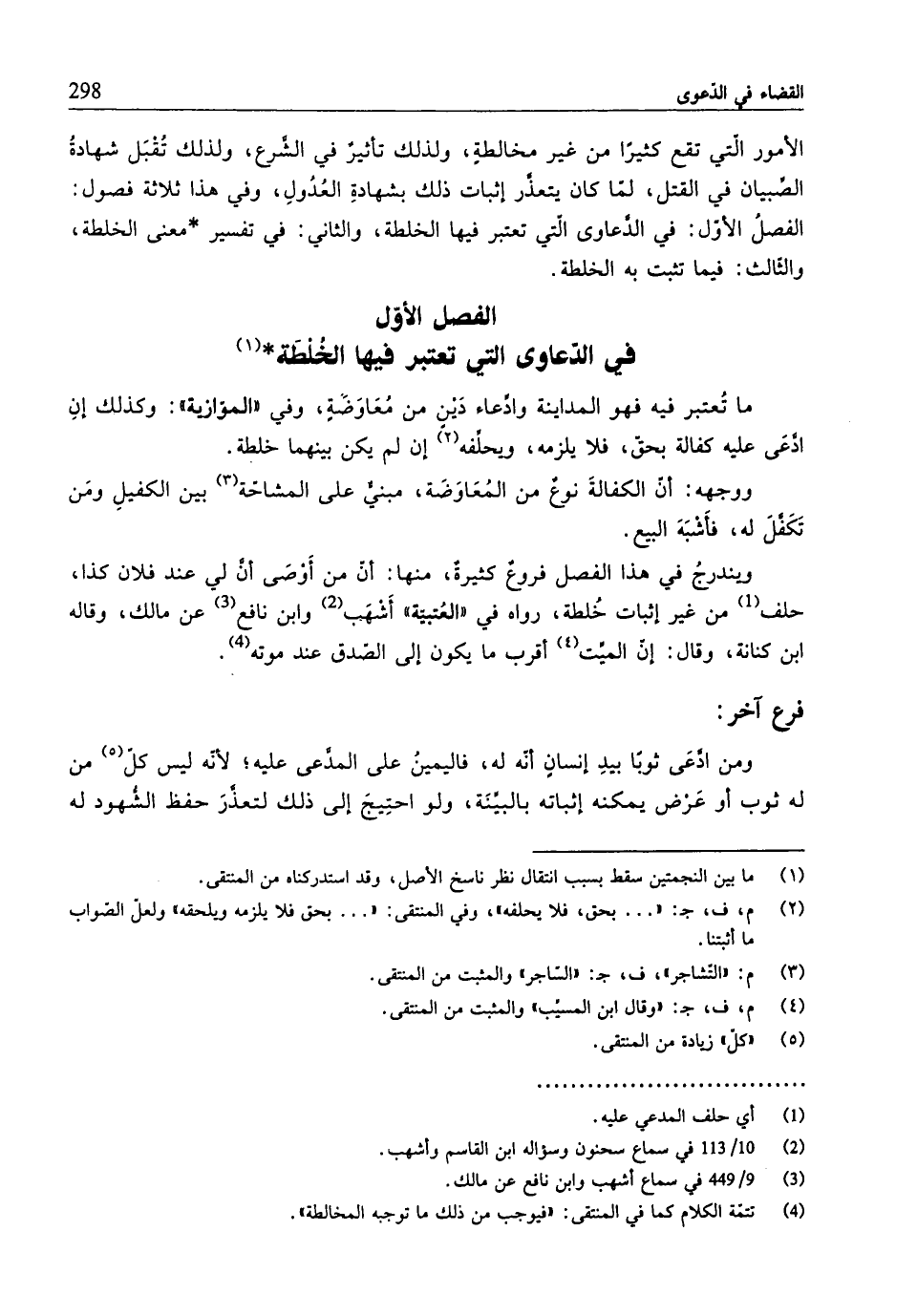 الفصل الأوّل في الدّعاوى الّتي تعتبر فيها الخُلْطَة*