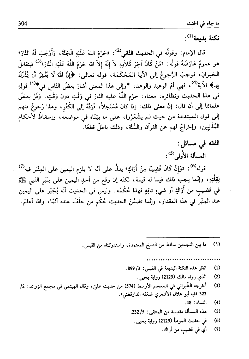 (¬6) في حديث الموطَّأ (2129) رواية يحيى.