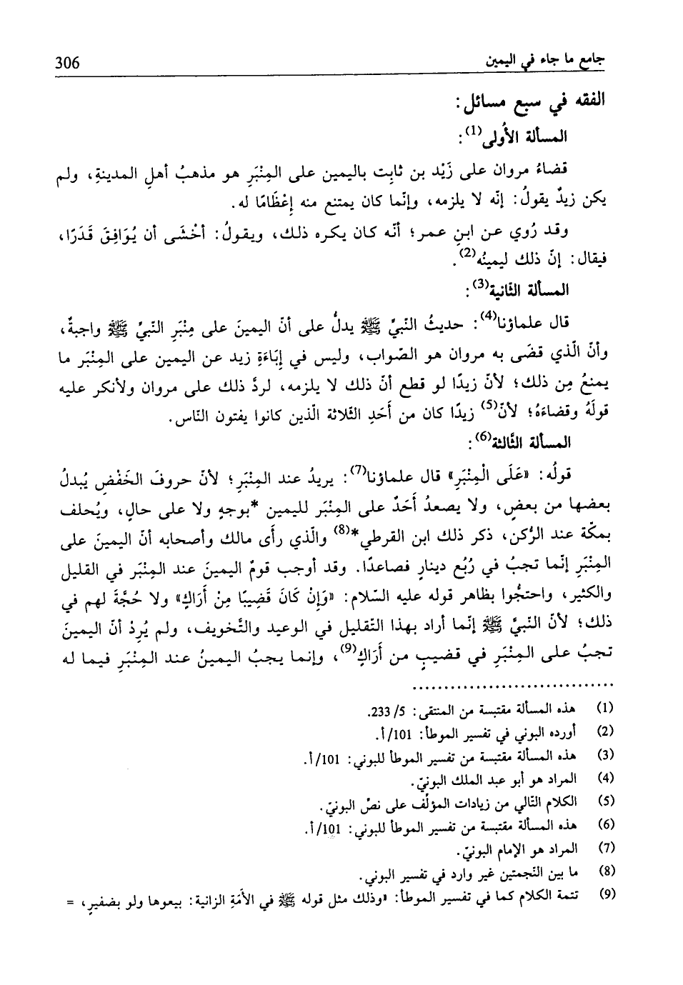 (¬6) هذه المسألة مقتبسة من تفسير الموطَّأ للبوني: 101/ أ.