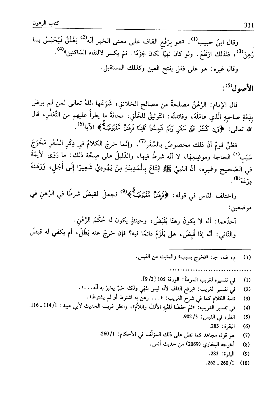 واختلف النَّاس في قوله: {فَرِهَانٌ مَقْبُوضَةٌ} (¬9) فجعلَ القبضَ شرطًا في الرَّهنِ في موضعين: