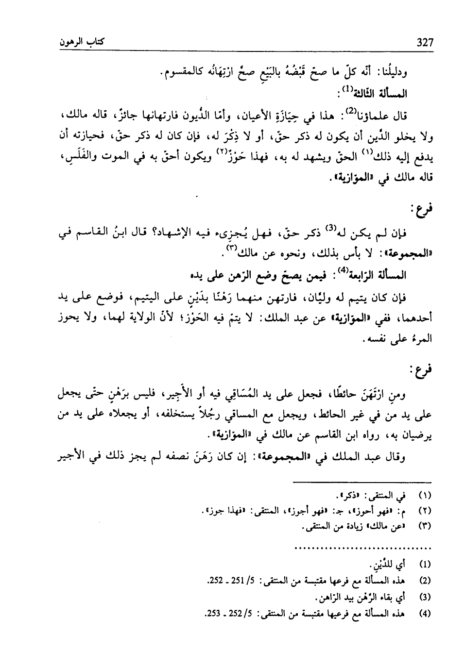 (¬4) هذه المسألة مع فرعها مقتبسة من المنتقى: 5/ 251 - 252.