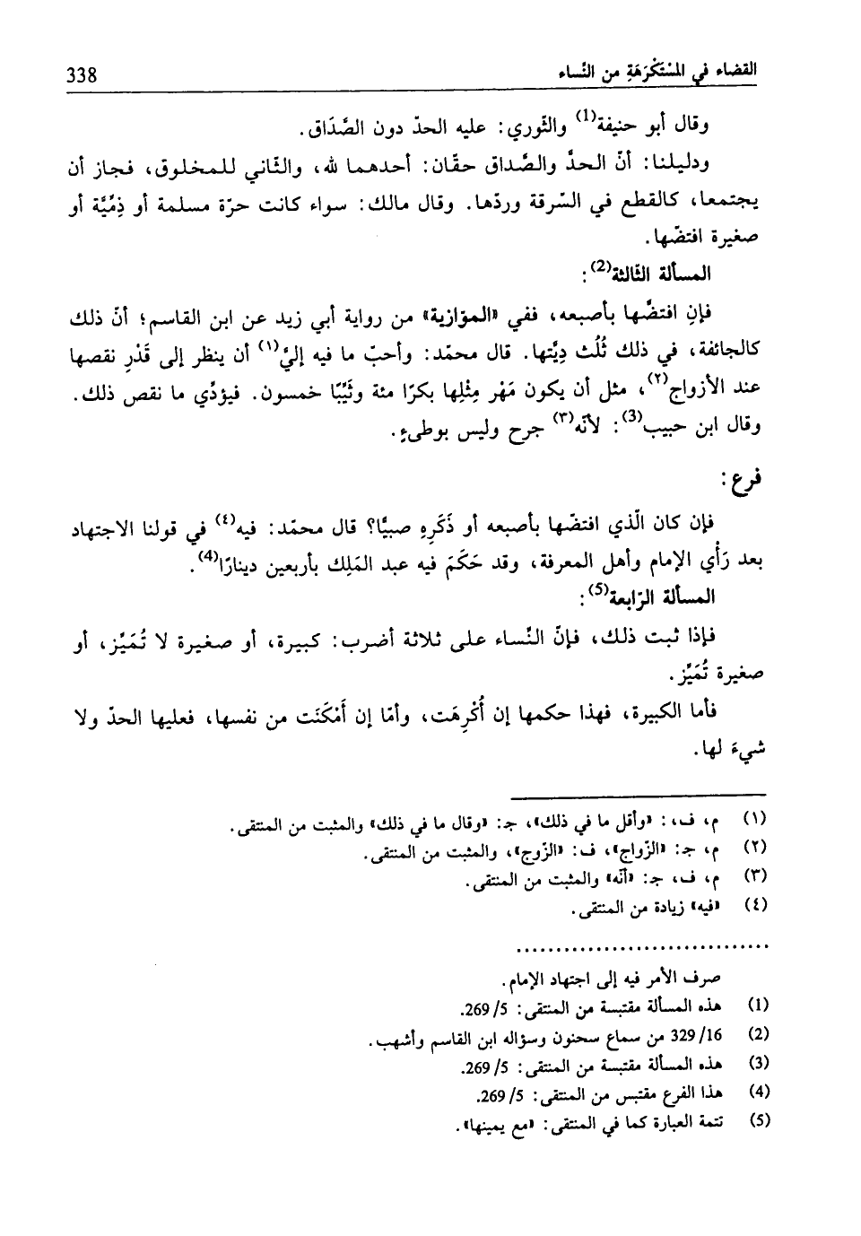 (¬5) هذه المسألة مقتبسة من المنتقى: 5/ 269.