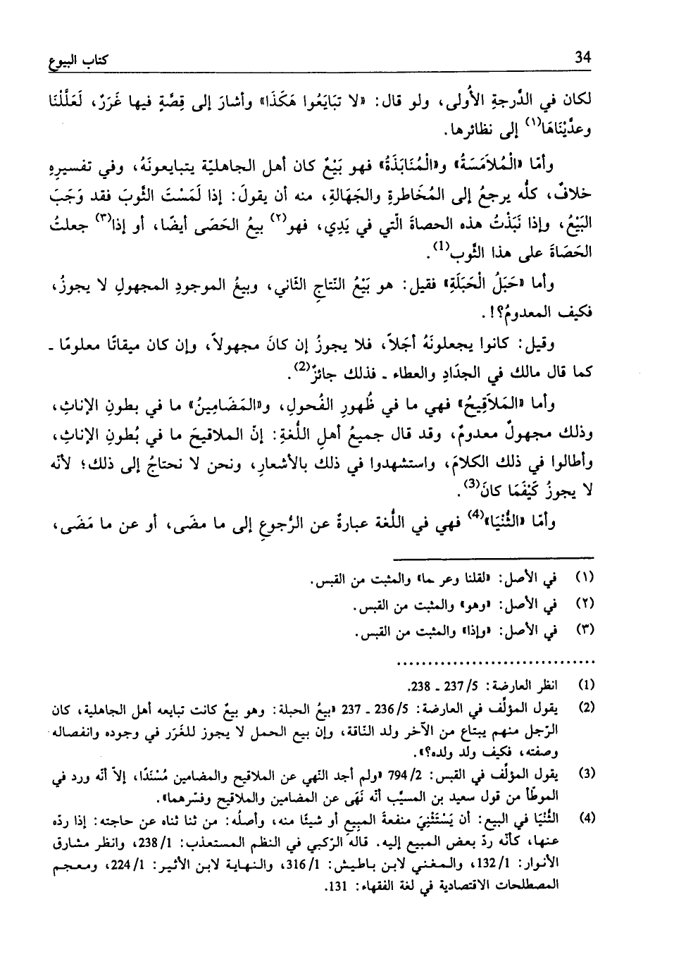 (¬3) بقول المؤلّف في القبس: 2/ 794 "ولم أجد النّهي عن الملاقيح والمضامين مُسْنَدًا، إِلَّا أنَّه ورد في الموطّأ من قول سعيد بن المسيِّب أنَّه نَهَى عن المضامين والملاقيح وفسّرهما".