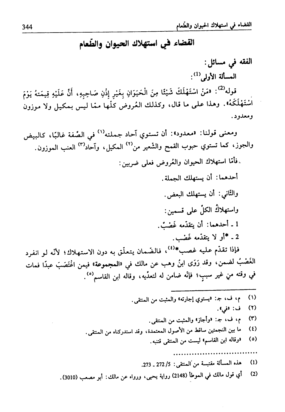 (¬1) هذه المسألة مقتبسة من المنتقى: 5/ 272 - 273.