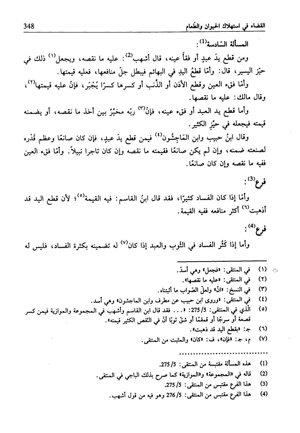 (¬1) هذه المسألة مقتبسة من المنتقى: 5/ 275.