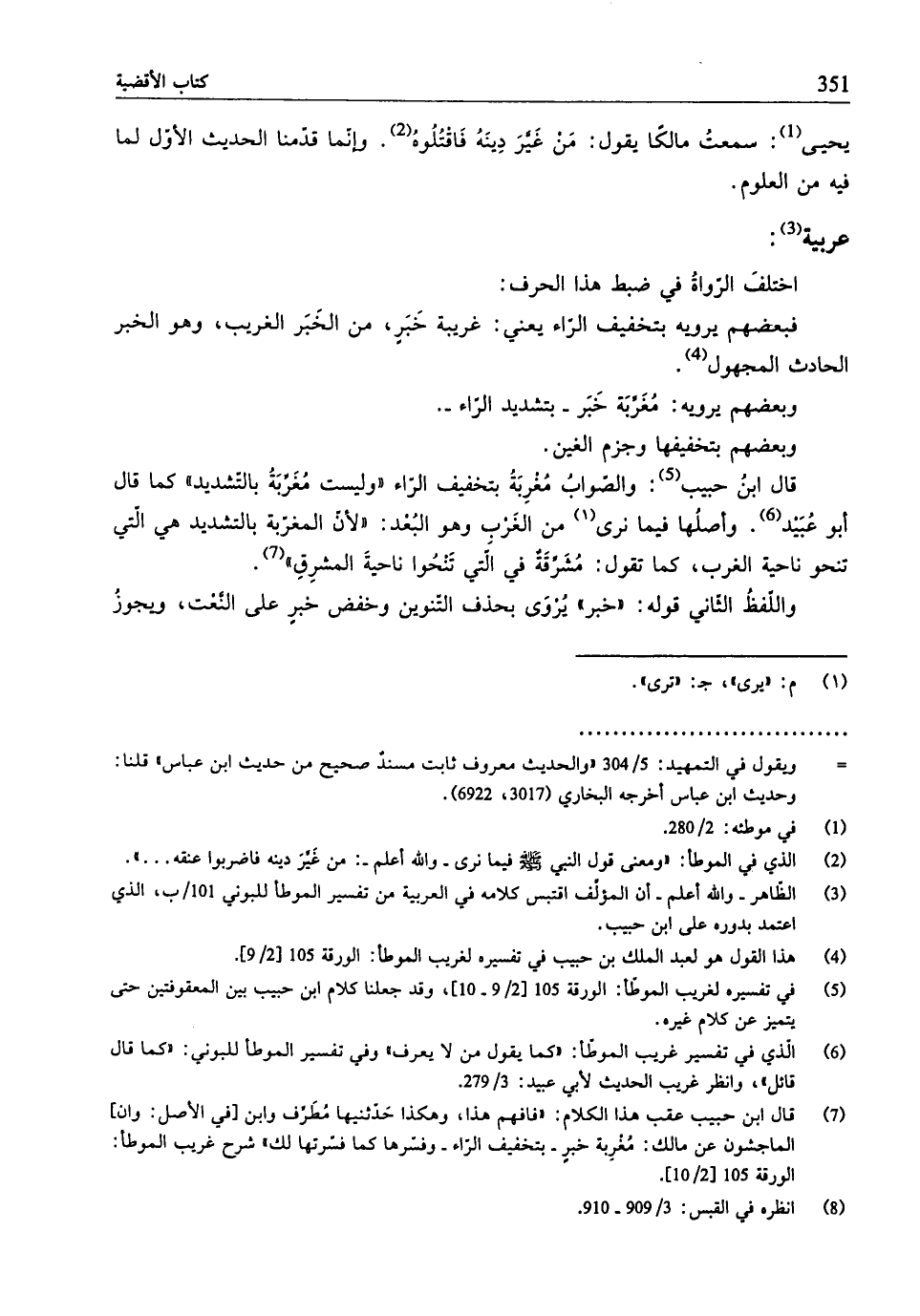 (¬3) الظّاهر- والله أعلم- أنّ المؤلِّف اقتبس كلامه في العربيّة من تفسير الموطَّأ للبوني 101/ ب، الّذي اعتمد بدوره على ابن حبيب.