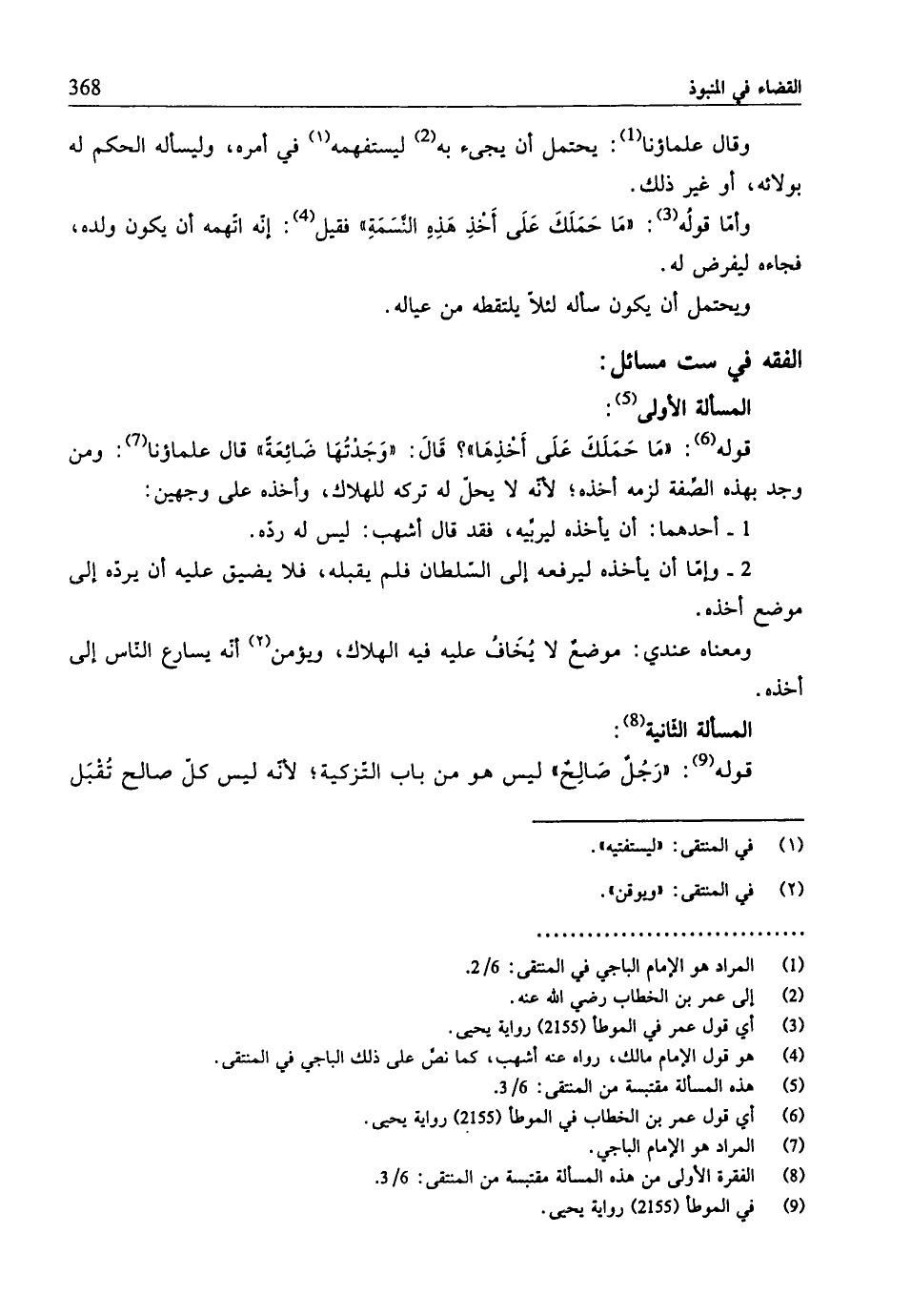 (¬8) الفقرة الأولى من هذه المسألة مقتبسة من المنتقى: 6/ 3.