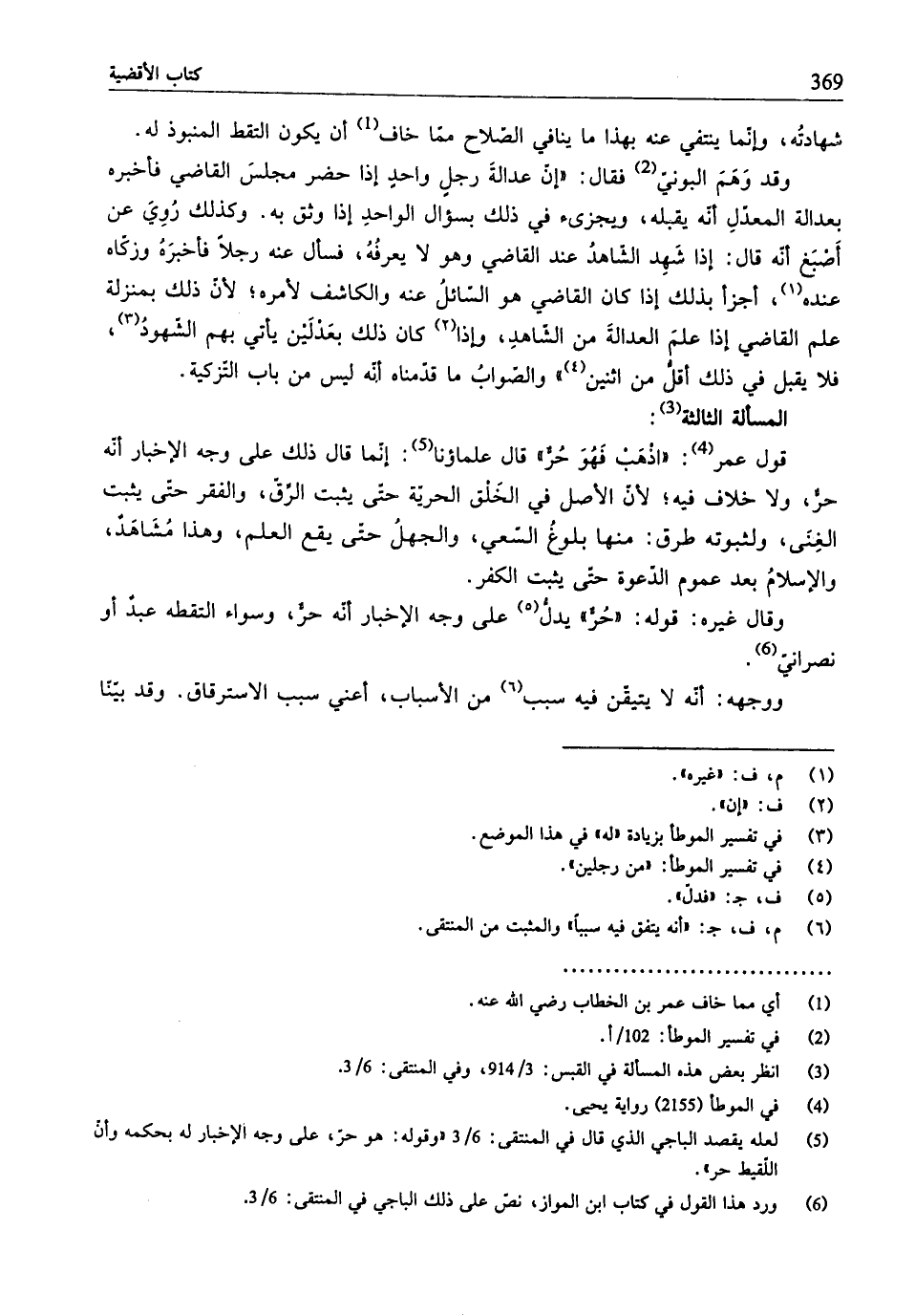(¬3) انظر بعض هذه المسألة في القبس: 3/ 914، وفي المنتقى: 6/ 3.