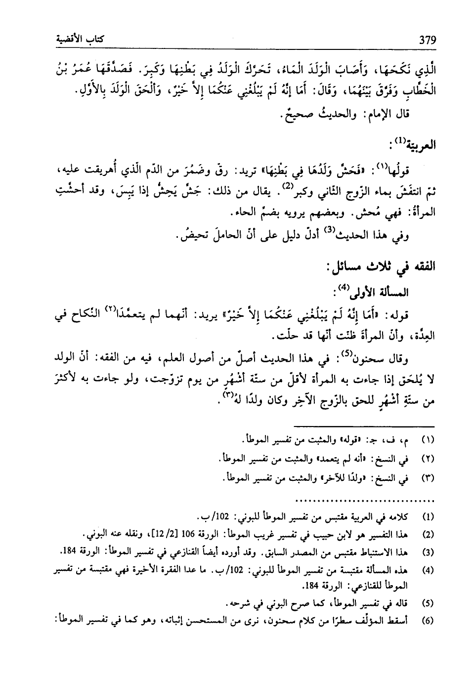 (¬4) هذه المسألة مقتبسة من تفسير الموطَّأ للبوني: 102/ ب. ما عدا الفقرة الأخيرة فهي مقتبسة من تفسير الموطَّأ للقنازعي: الورقة 184.