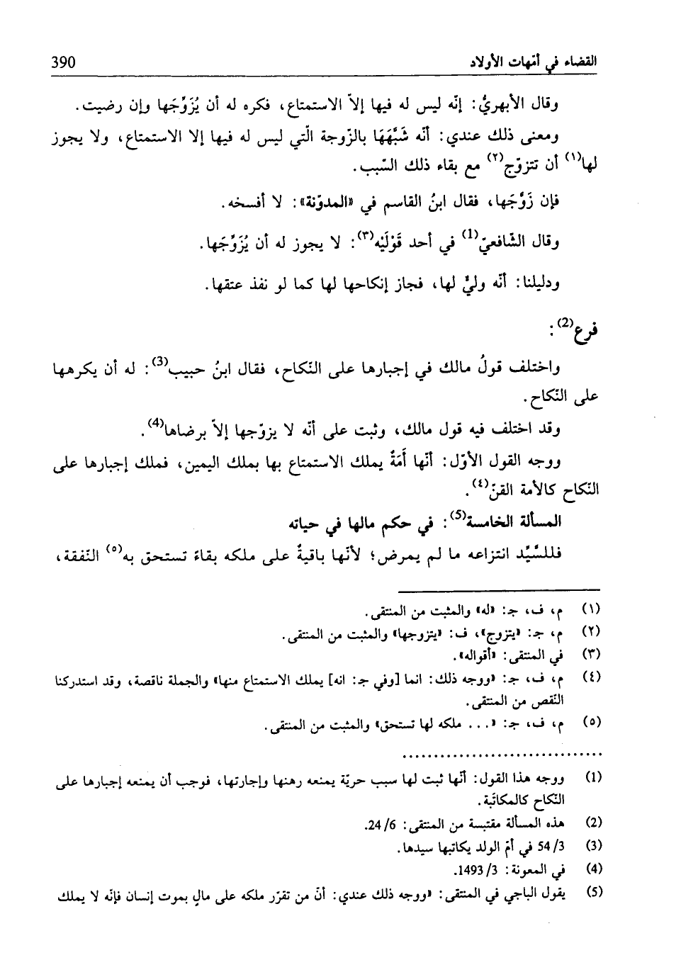 (¬3) في الواضحة، كلما نصّ على ذلك الباجي. وانظر المعونة: 3/ 1496.