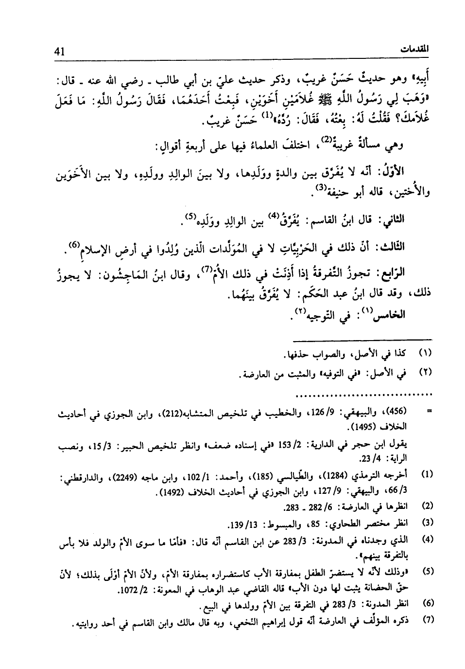 (¬4) الّذي وجدناه في المدوّنة: 3/ 283 عن ابن القاسم أنَّه قال: "فأمّا ما سوى الأمّ والولد فلا بأس بالتفرقة بينهم".