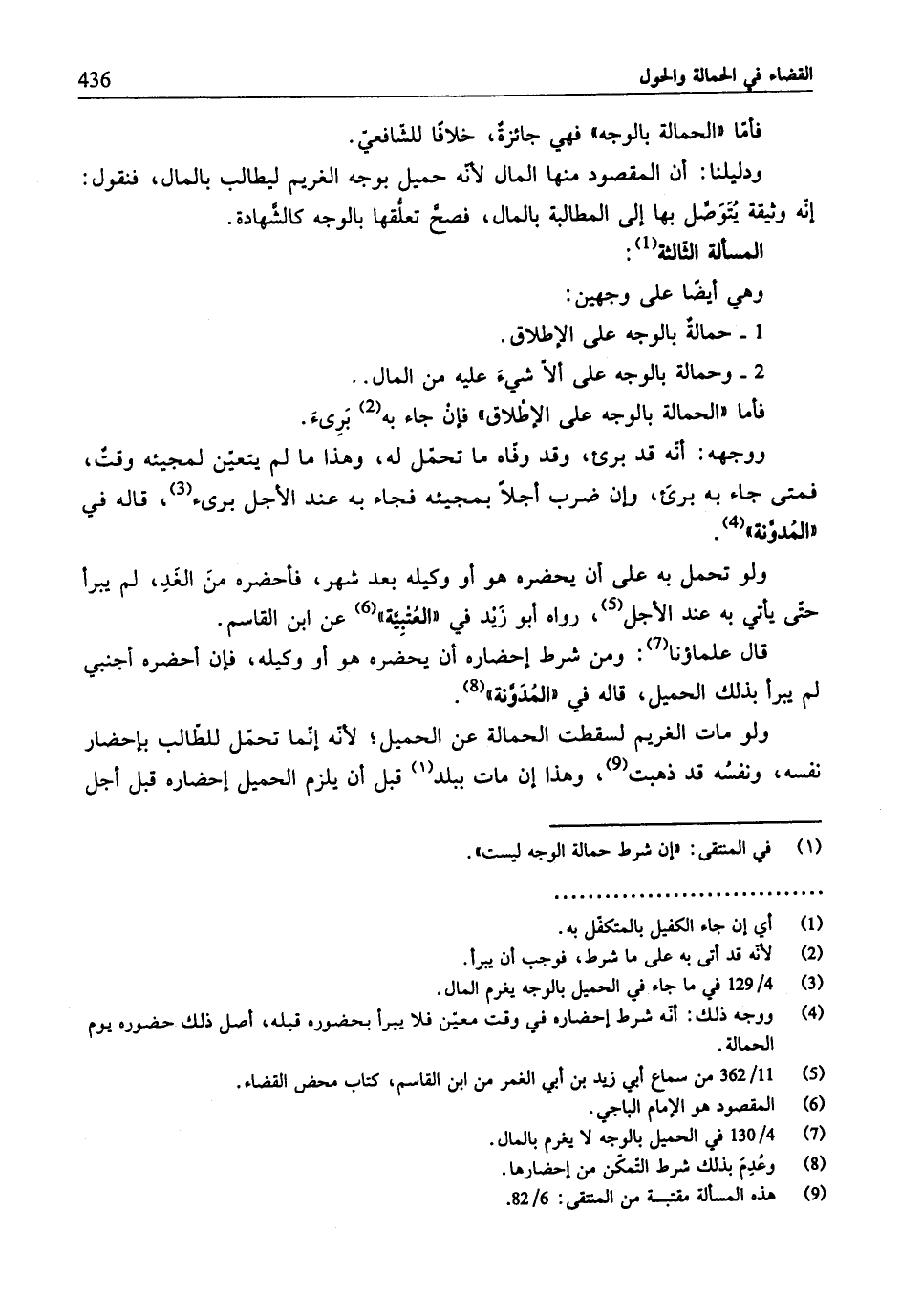 فأمّا "الحمالة بالوجه" فهي جائزة، خلافًا للشافعي.