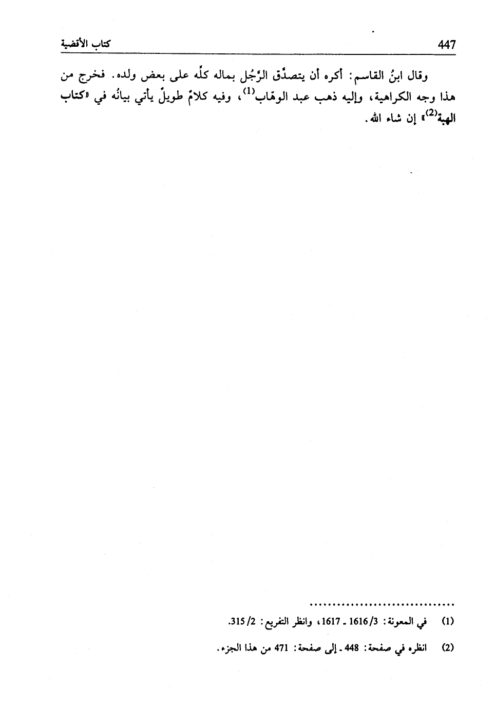 (¬1) في المعونة: 3/ 1616 - 1617، وانظر التفريع: 2/ 315.