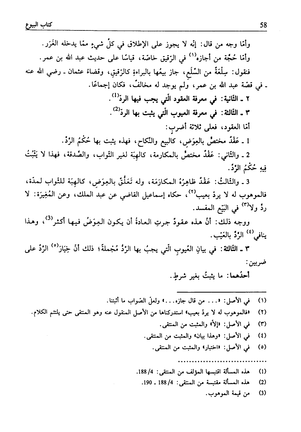 (¬1) هذه المسألة اقتبسها المؤلِّف من المنتقي: 4/ 188.
